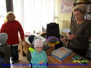 Dzięki uprzejmości Pani dyrektor Biblioteki Publicznej w Baniach, poznaliśmy pracę bibliotekarza. Wiemy na czym polega wypożyczanie książek - wystarczy się zapisać (my musimy przychodzić jeszcze z mamą).