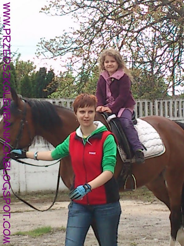 Było wiele radości . Najpierw karmiliśmy Natalię jabłkami (tak się nazywa ta klacz), a potem chętni mogli wskoczyć (przy pomocy Pana Edka) na koński grzbiet i "pogalopować". Mamy nadzieję, że Natalia nas odwiedzi.