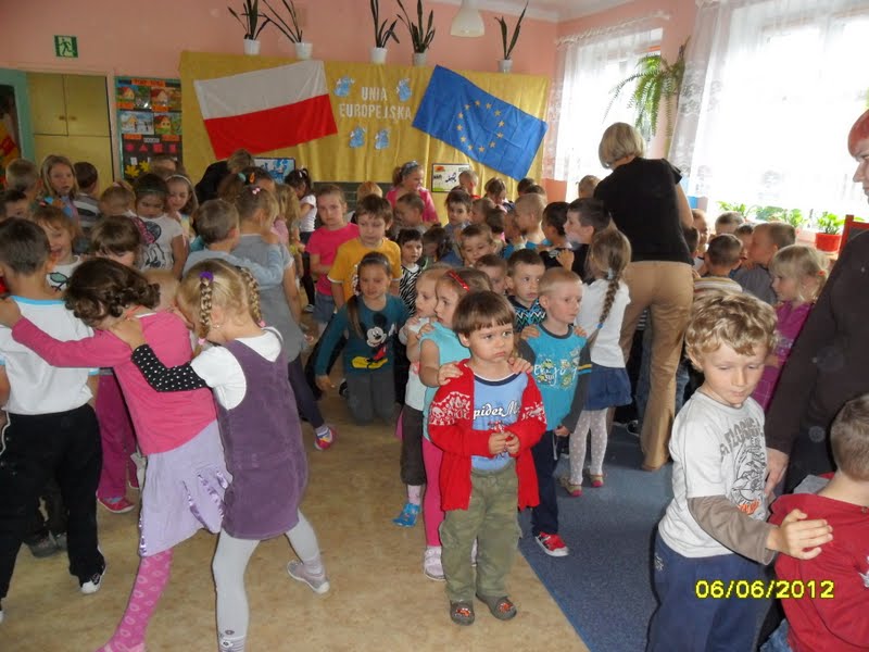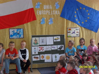 Nadszedł czas na podsumowanie wiadomości o Unii Europejskiej, które zdobywaliśmy w ciągu mijającego roku szkolnego. Znamy kraje członkowskie, kilka zwrotów w obcych językach, hymn UE, flagę, rozpoznajemy utwory muzyczne, charakterystyczne dla danego kraju, potrawy, dziecięce zabawy.