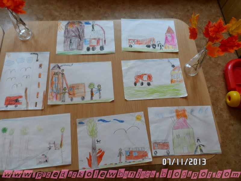 Tematem prac było przedstawienie działań strażaków w różnych sytuacjach zagrożenia życia ludzi, zwierząt i przyrody. Na pierwszym etapie konkursu, w przedszkolu, prace zostały ocenione, a autorzy najlepszych z nich nagrodzeni. Gratulujemy