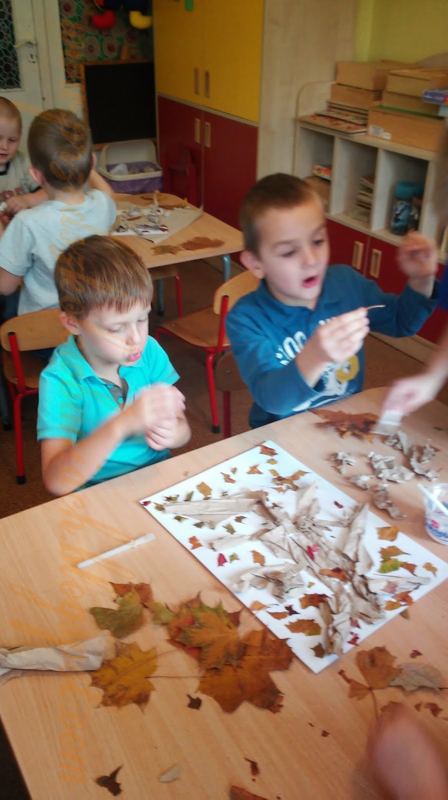 Te liście wysuszyliśmy w książkach, a jak były już gotowe, wykorzystaliśmy je do wykonania jesiennego pejzażu. Tak powstała pamiątka z tej listopadowej wycieczki.