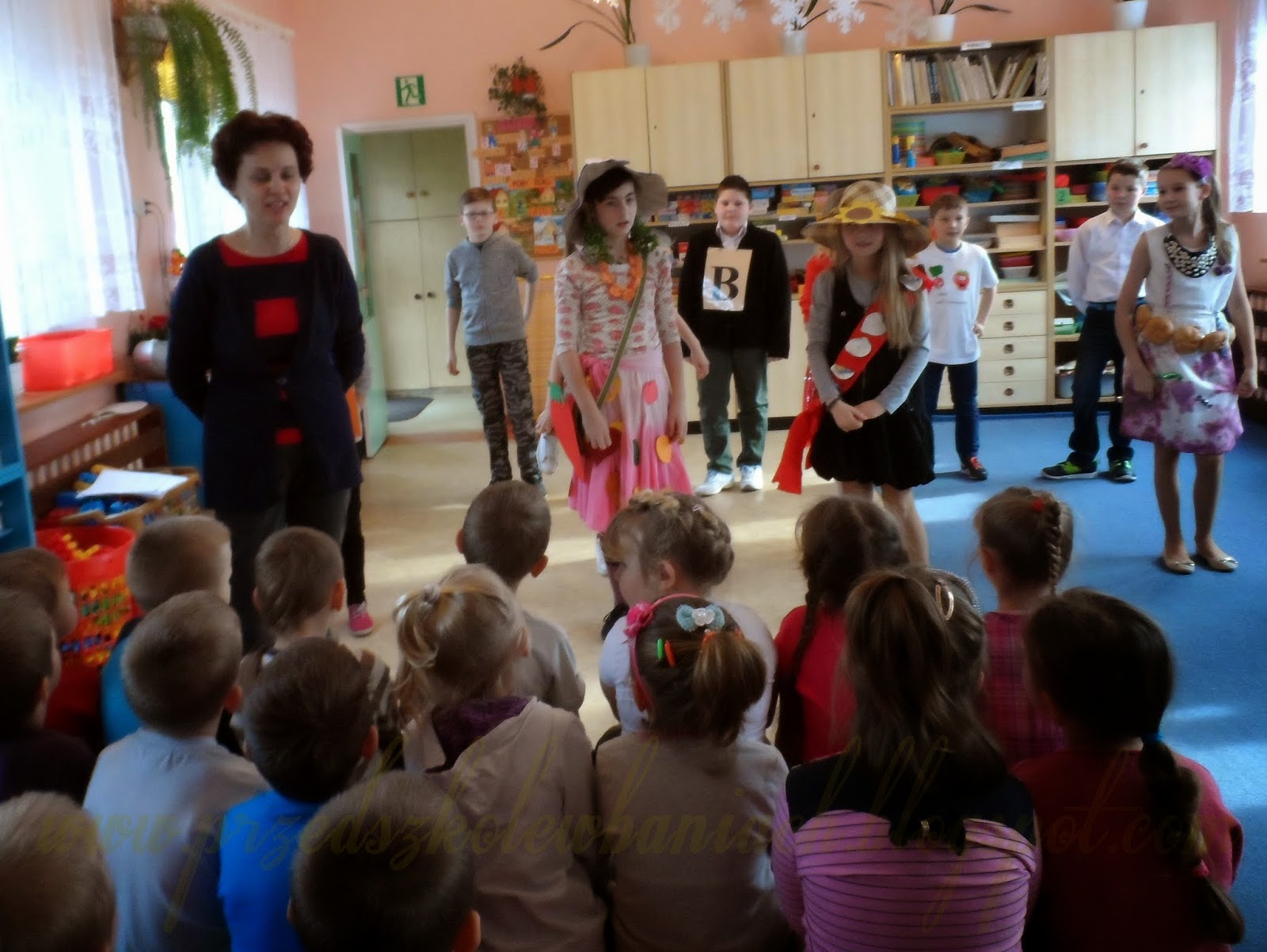 Tym razem obejrzeliśmy spektakl pt. "Zdrowy pokaz mody". Starsi koledzy i koleżanki przekazali nam wiele ciekawych informacji na temat witamin, minerałów, zdrowego odżywiania i zdrowego stylu życia. Aktorzy przygotowali bardzo kolorowe i zabawne kostiumy. A prawdziwą wisienką na torcie był układ choreorgaficzny do wesołej piosenki na zakończenie przedstawienia.