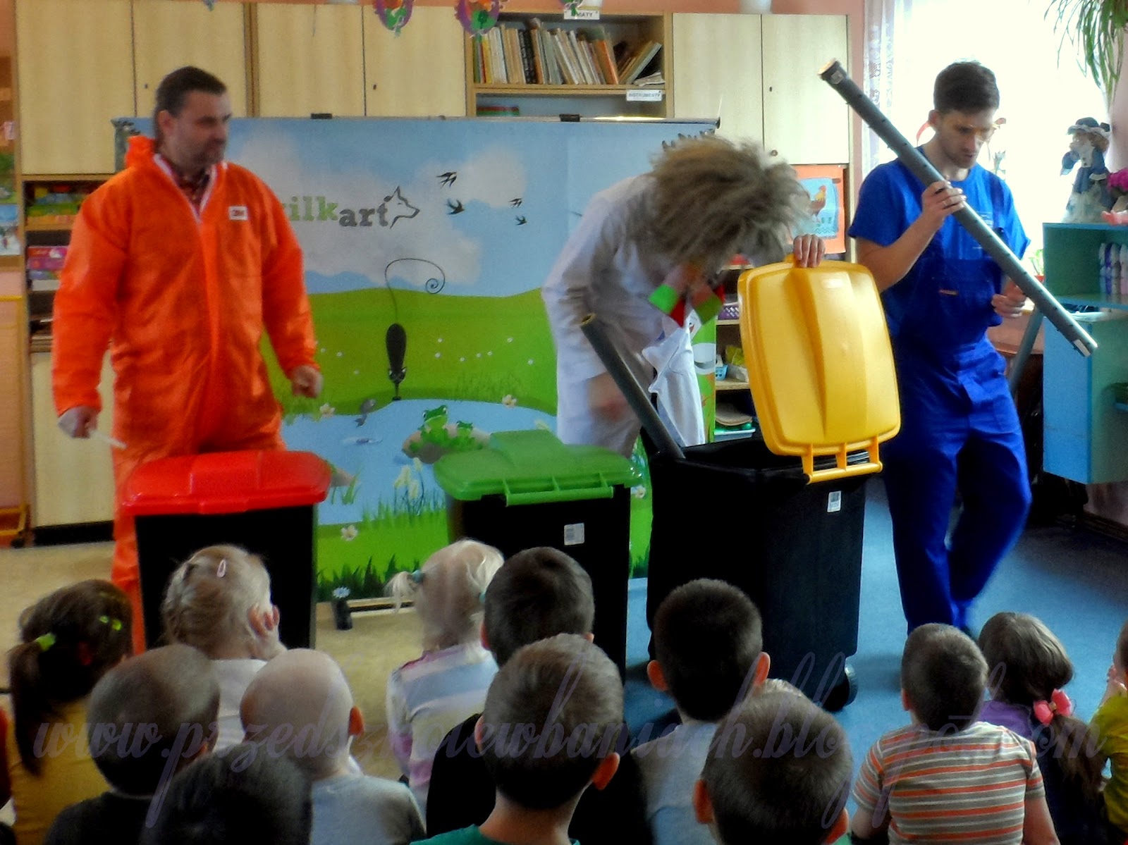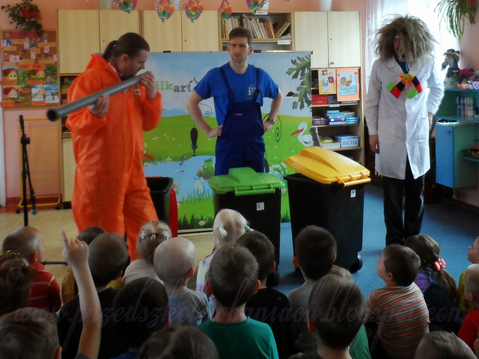 To już ósme i jak zawsze wspaniałe spotkanie z teatrem. Tym razem Profesor wraz z przyjaciółmi opowiadał nam jak zrobić instrumenty muzyczne z materiałów, którym można w ten sposób dać drugie życie. To bardzo ważne dla nas wszystkich, bo daje nam to dobrą zabawę i jednocześnie dbamy o naszą piękną Ziemię. Może warto przypomnieć, że dla wspólnego dobra nie należy wywozić śmieci na dzikie wysypiska, które najczęściej spotyka się w lesie.