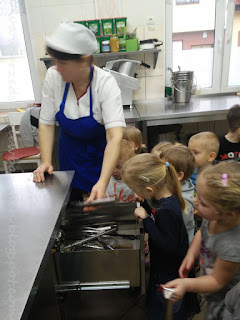 Nasze maluszki są bardzo ciekawe Świata. Dziś zawędrowały do przedszkolnej kuchni, żeby poznać miejsce i sposób przygotowywania zdrowych posiłków. Wyposażone w kulinarną wiedzę, przystąpiły do samodzielnego przygotowania sobie śniadania. Okazało się, że takie eksperymentowanie zachęca do poznawania nowych smaków i komponowania najdziwniejszych kanapek. Pysznie było!