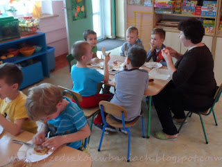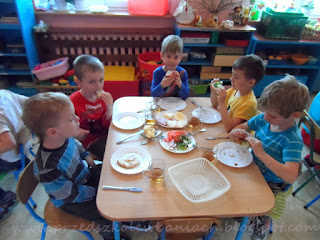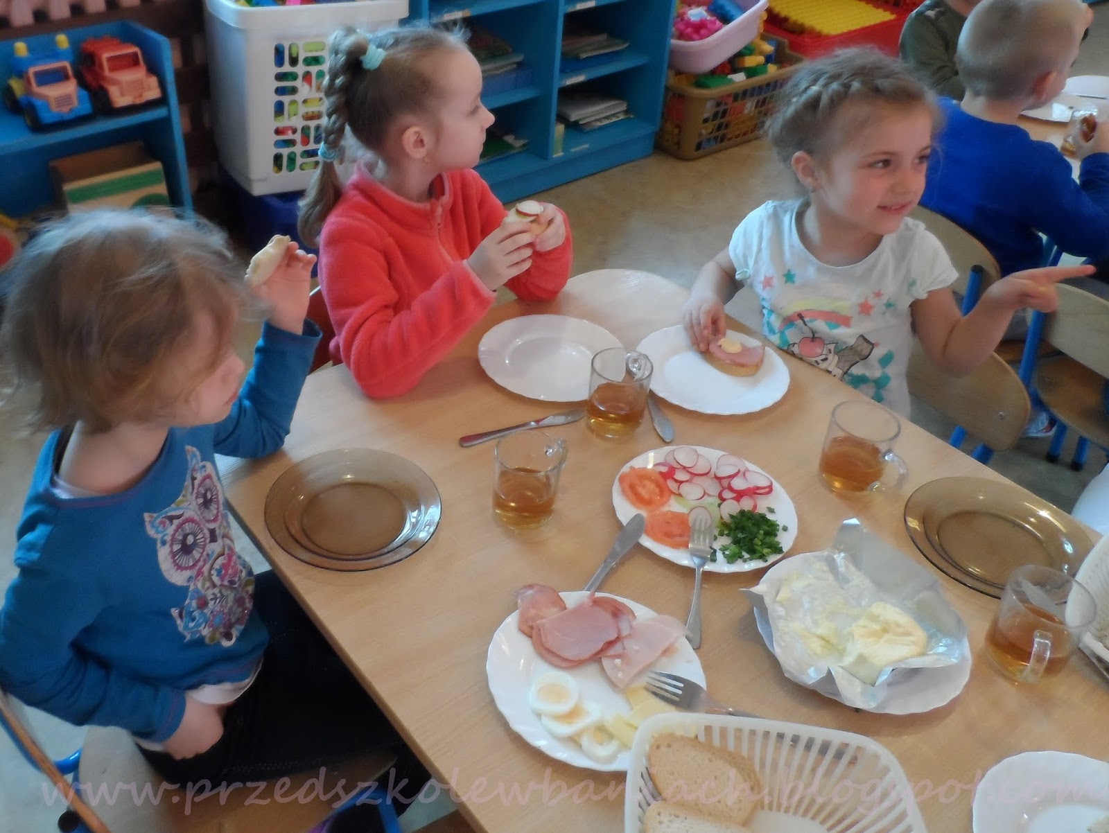 Dziś samodzielnie przygotowaliśmy sobie śniadanie. Nasze kanapki były bardzo kolorowe, bo układaliśmy na nich wszystko to, co było na stole, ba nawet to, co do dziś wydawało nam się