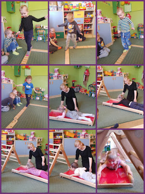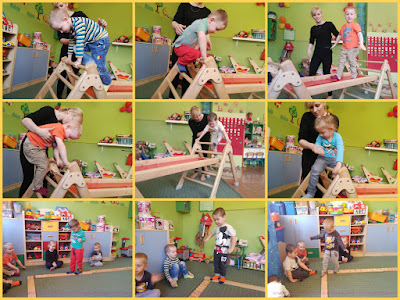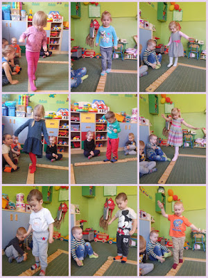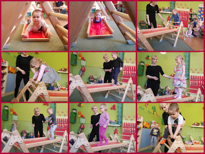 Maluszki wykonują wszystkie ćwiczenia dokładnie i bardzo ostrożnie.