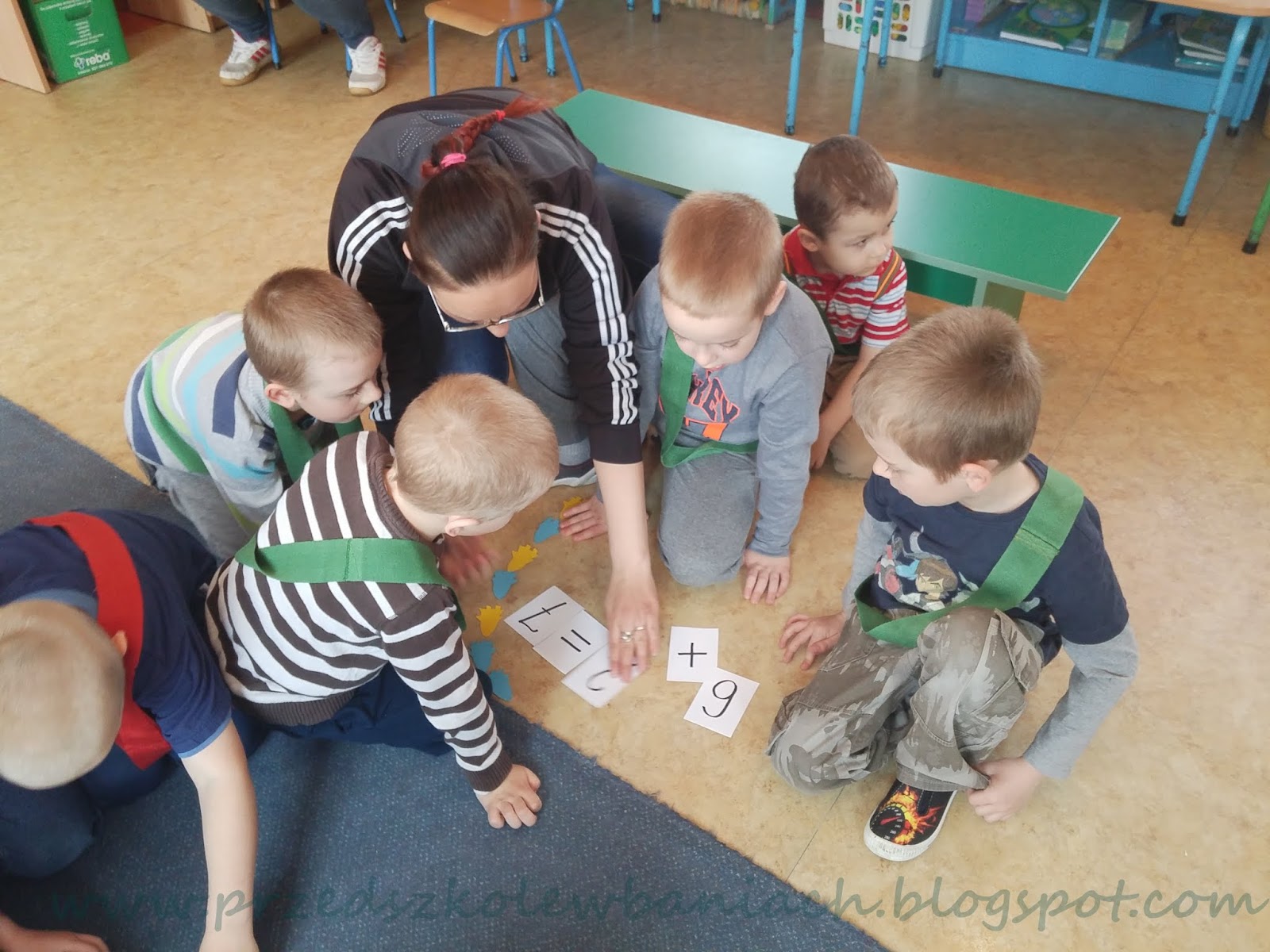 Dziś do przedszkola zaprosiliśmy swoich rodziców, ponieważ chcieliśmy Im zaprezentować swją wiedzę i umiejętności. Pani Alinka podzieliła nas na cztery drużyny i zaczęła się radosna rywalizacja. Każda z drużyn chciała wypaść w oczach rodziców jak najlepiej. Bardzo się staraliśmy, aby nasza nauka została doceniona przez naszych gości. I wiecie co, zdaje się nam, że dobrze nam poszło.