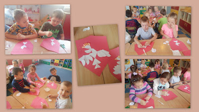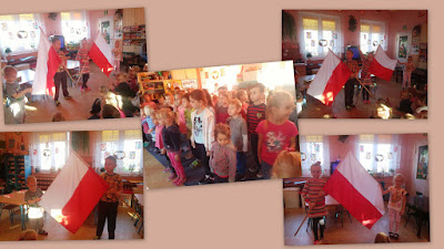 słuchaliśmy pieśni patriotycznych, a także malowaliśmy flagi i wyklejaliśmy godło.