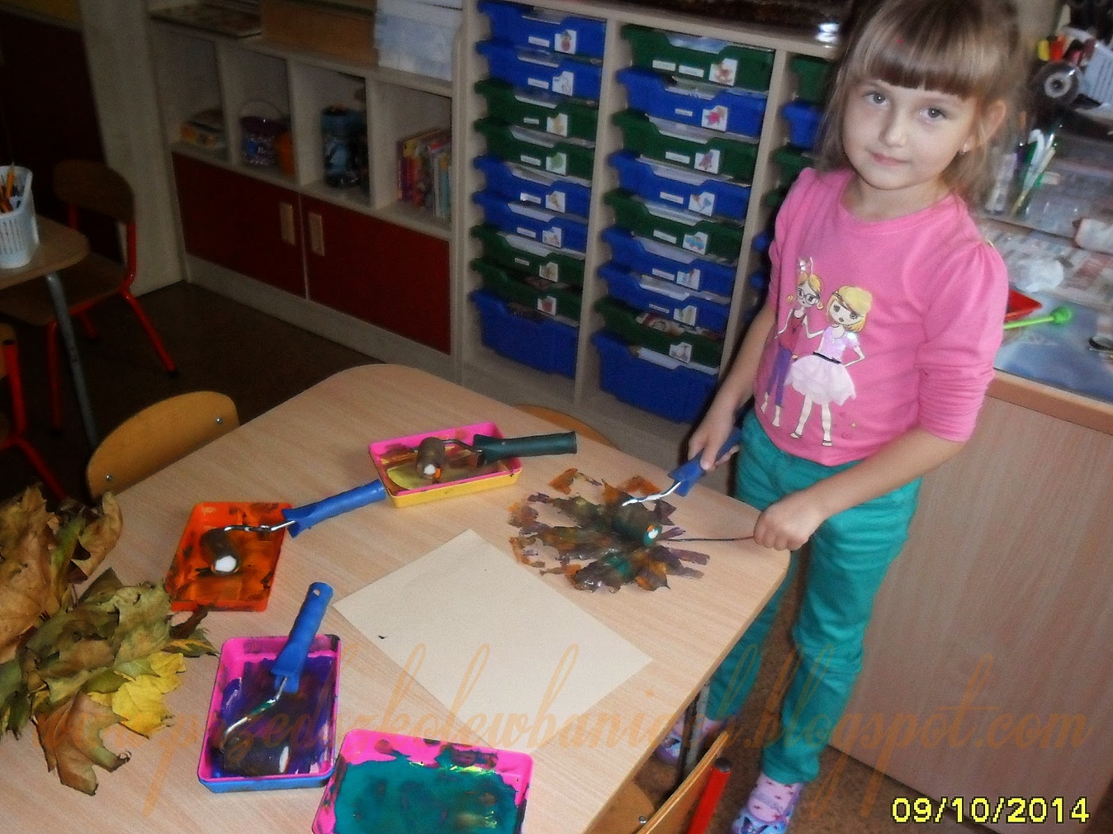 po wycięciu według szablonu i wykonaniu składanki, powstały jesienne liście: