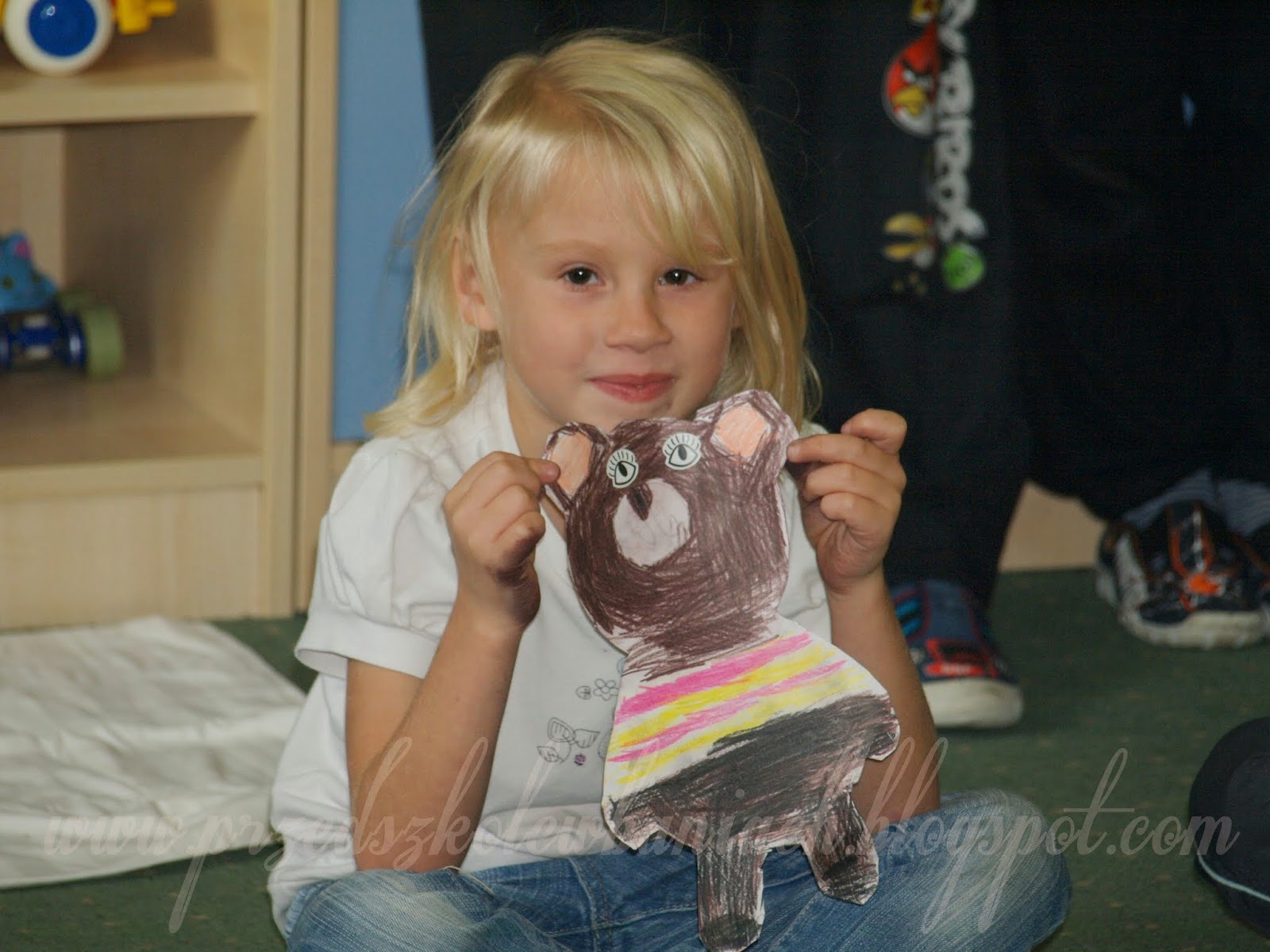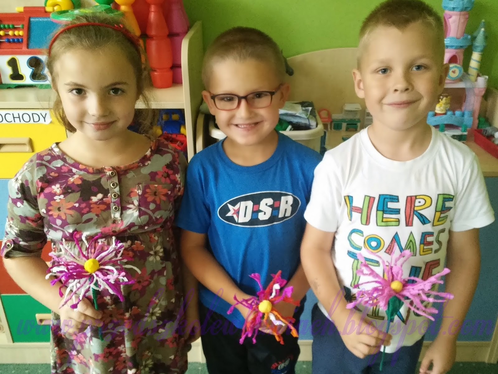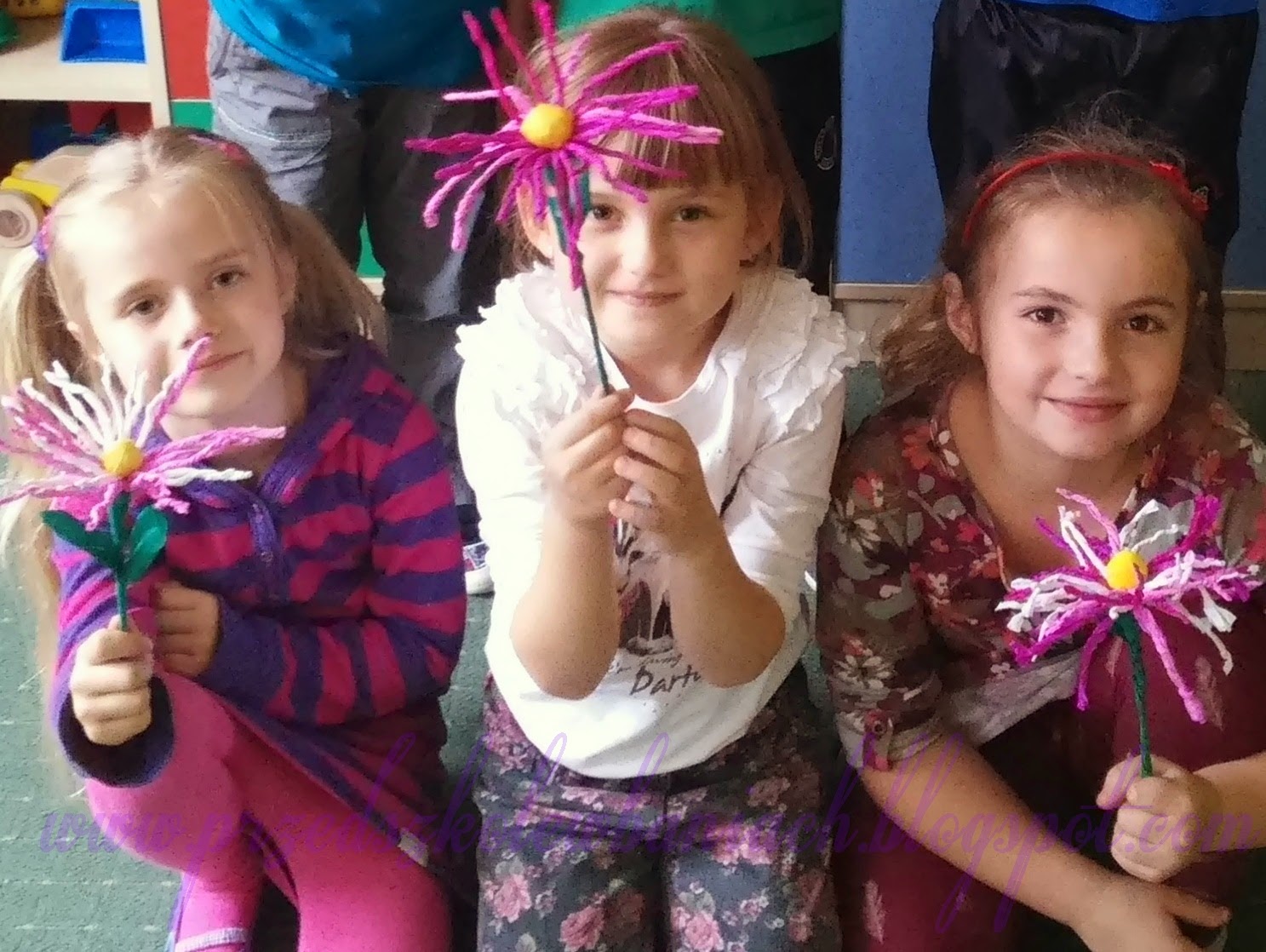 Po wyschnięciu Nasza Pani wycięła dokładnie kwiaty i prezent gotowy. ( Pozostało jeszcze oczywiście umycie stóp i dłoni, ale w tym pomogły nam Pani Ela i Pani Monika)