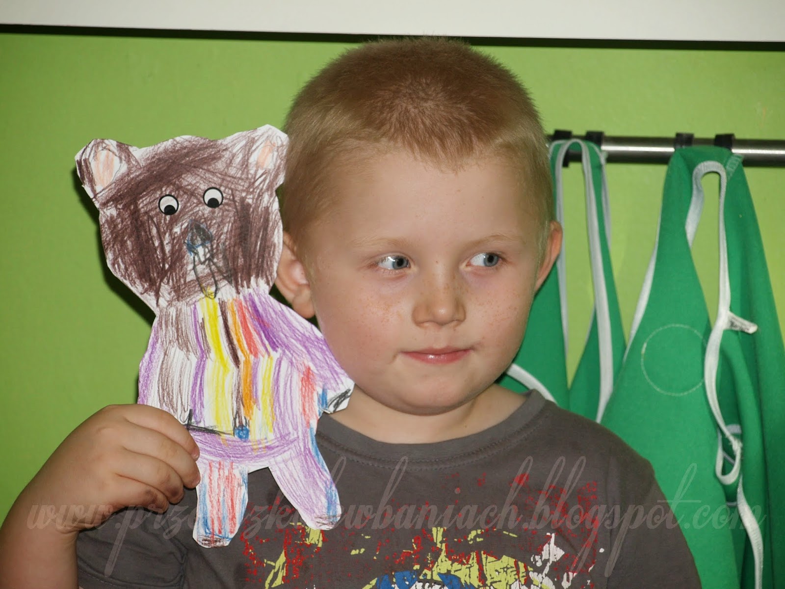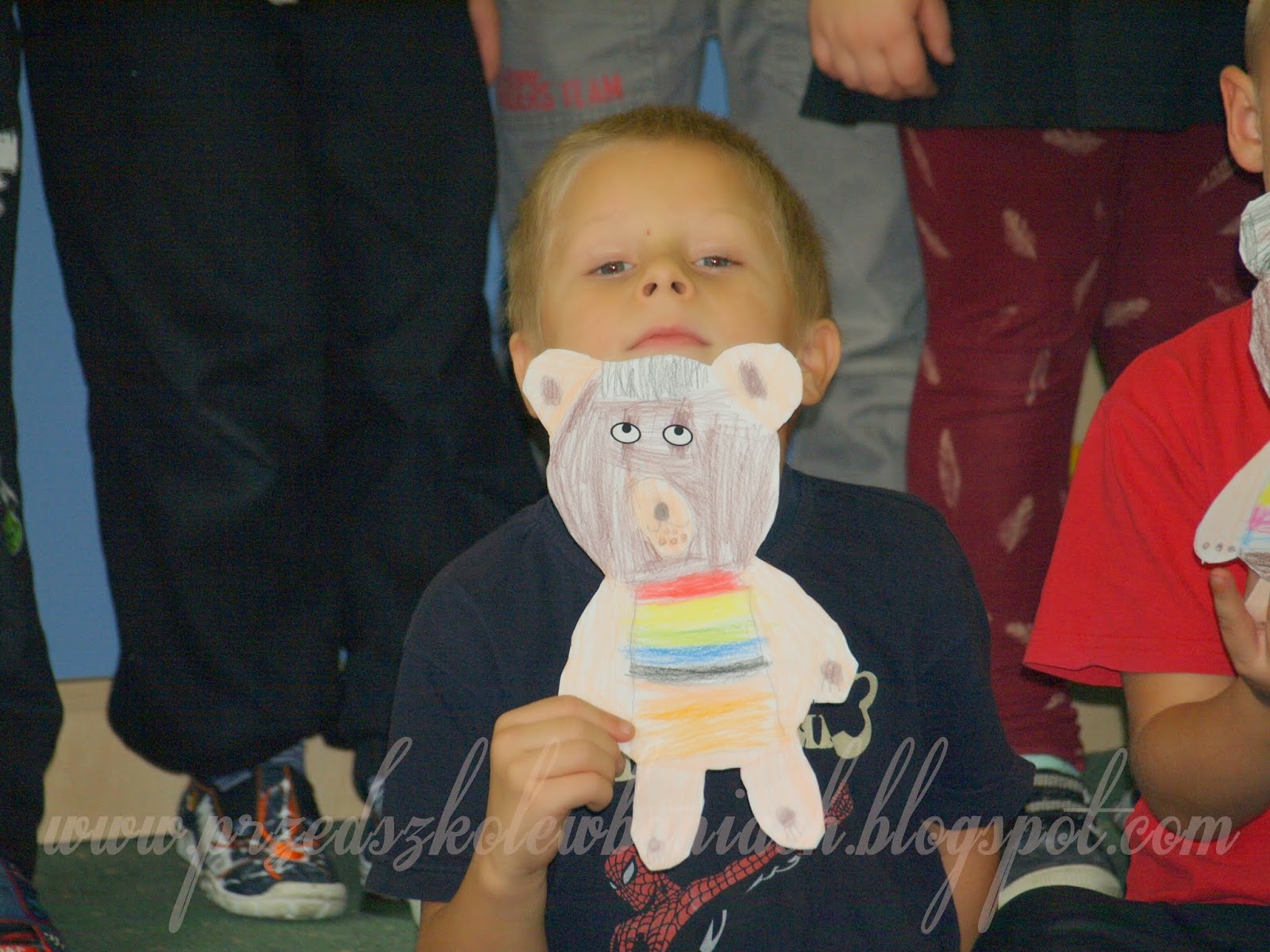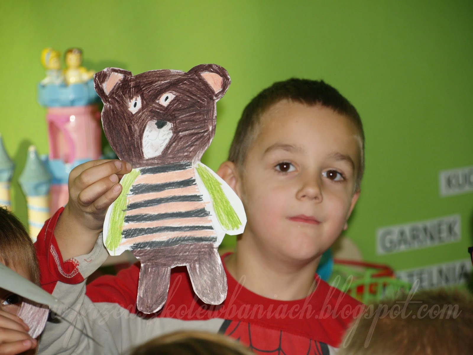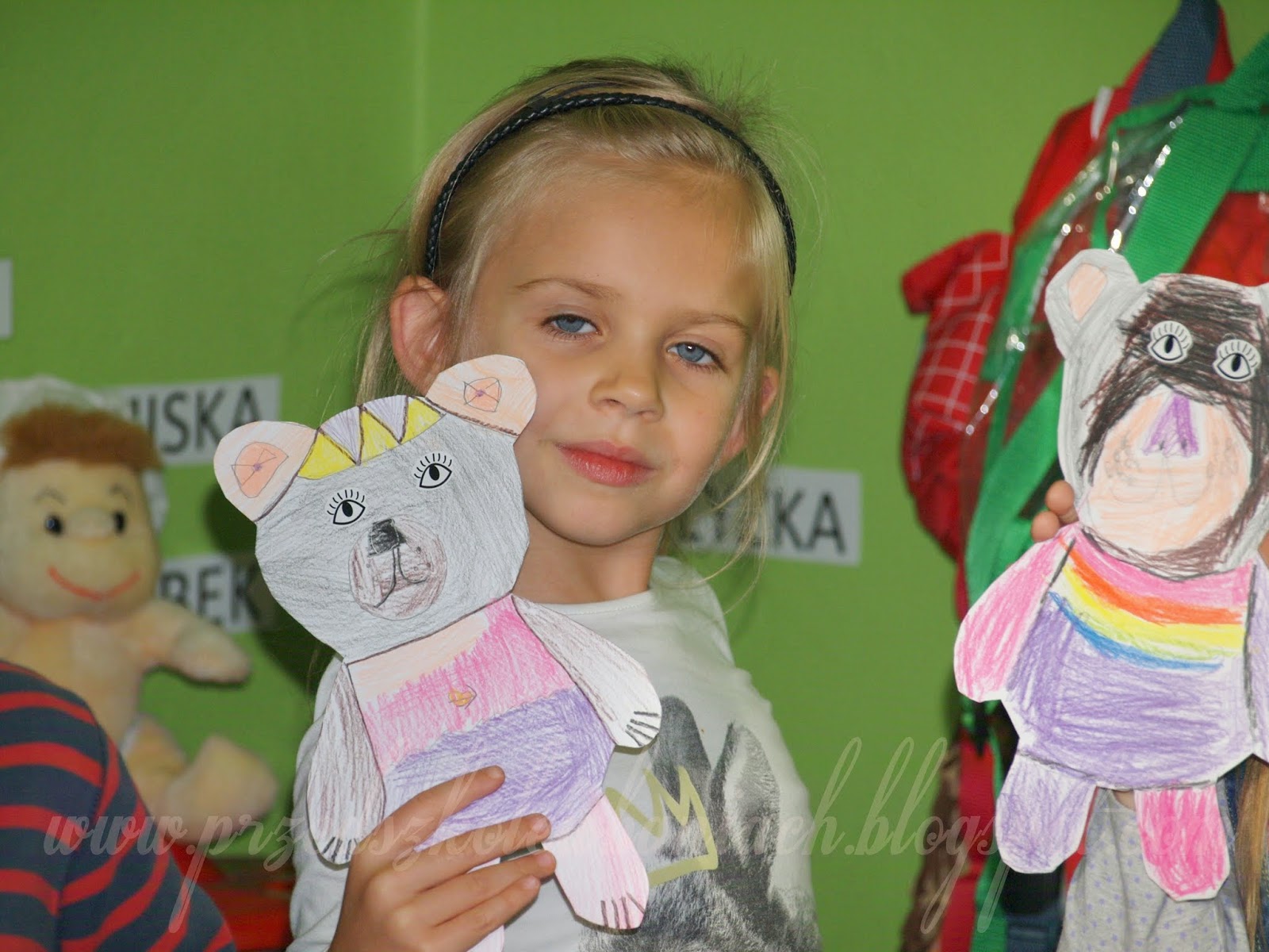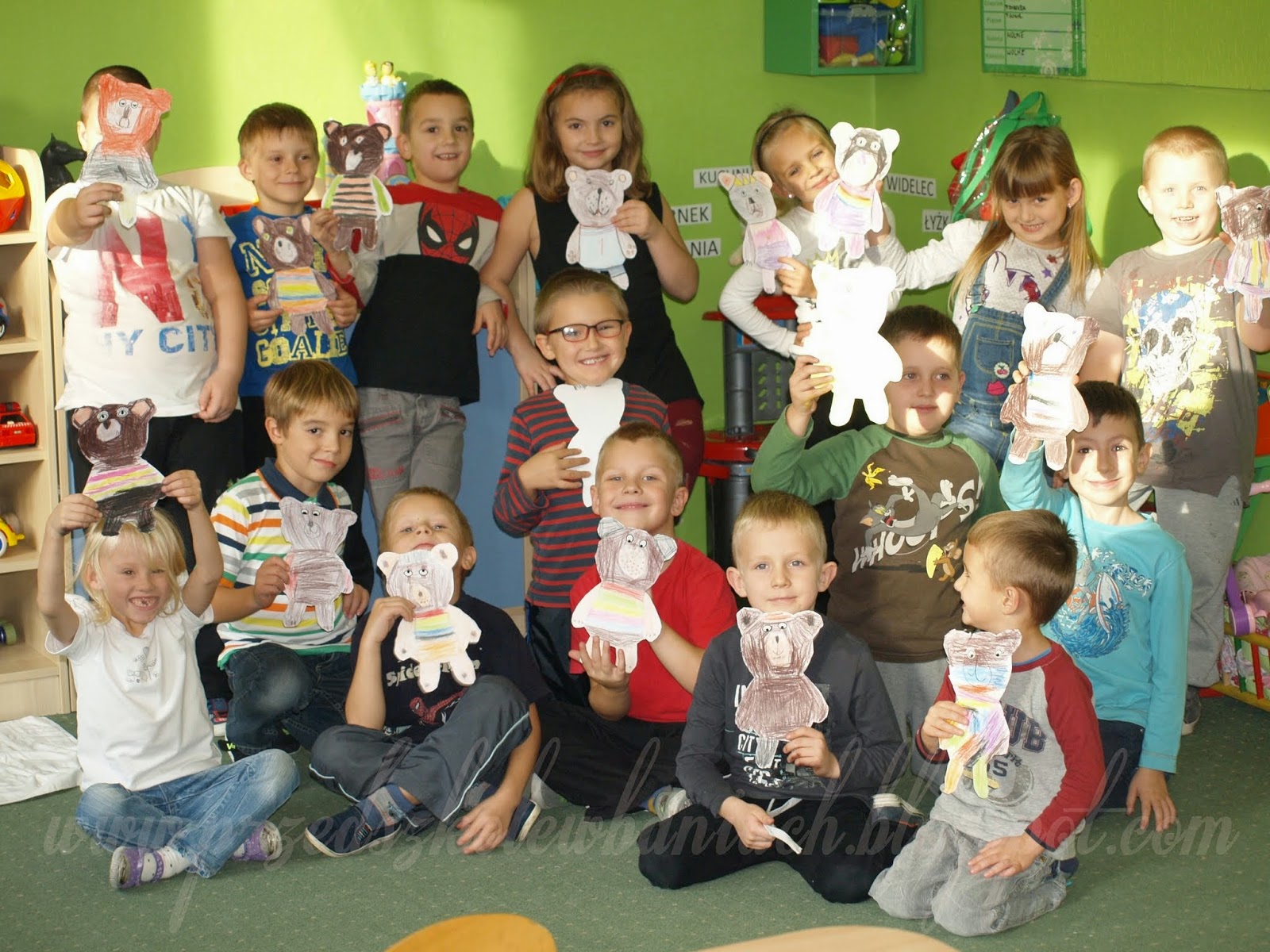 Po wycięciu odrysowanego z szablonu misia i uruchomieniu swojej wyobraźni, przystąpiliśmy do wykonania misia przyjaciela. To był indywidualny i osobisty projekt każdego z nas. Fajnie wyszło, Zobaczcie: